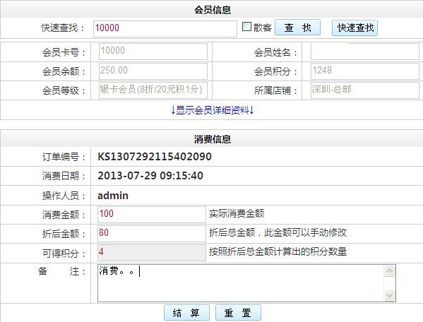 不用選擇產(chǎn)品的一種結(jié)算方式,直接輸入會(huì)員的消費(fèi)金額,就可以完成消費(fèi)。